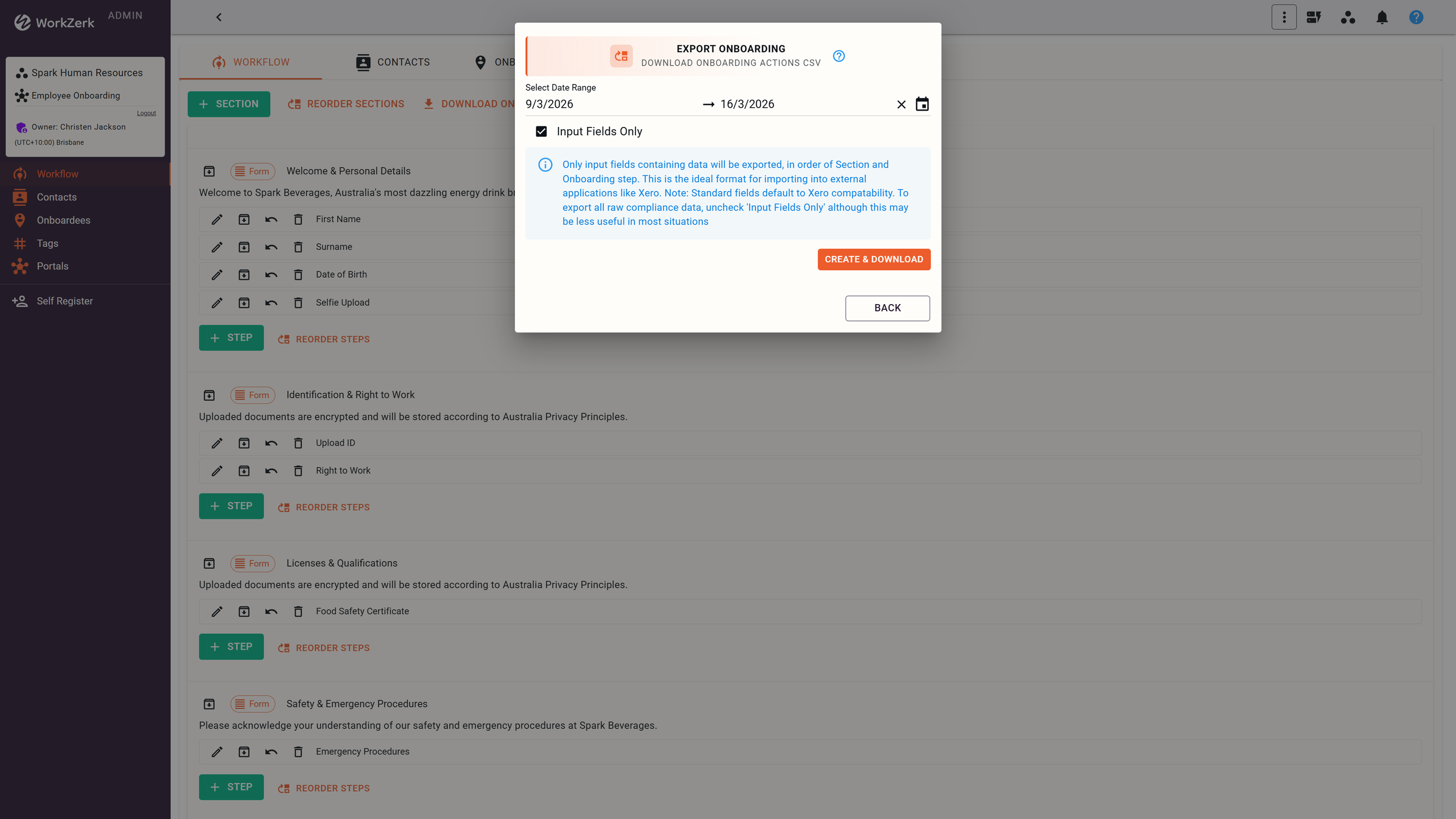 Export completed onboarding records — including contact details — as a Xero-ready CSV for quick import into your accounts as new Xero™ Contacts.