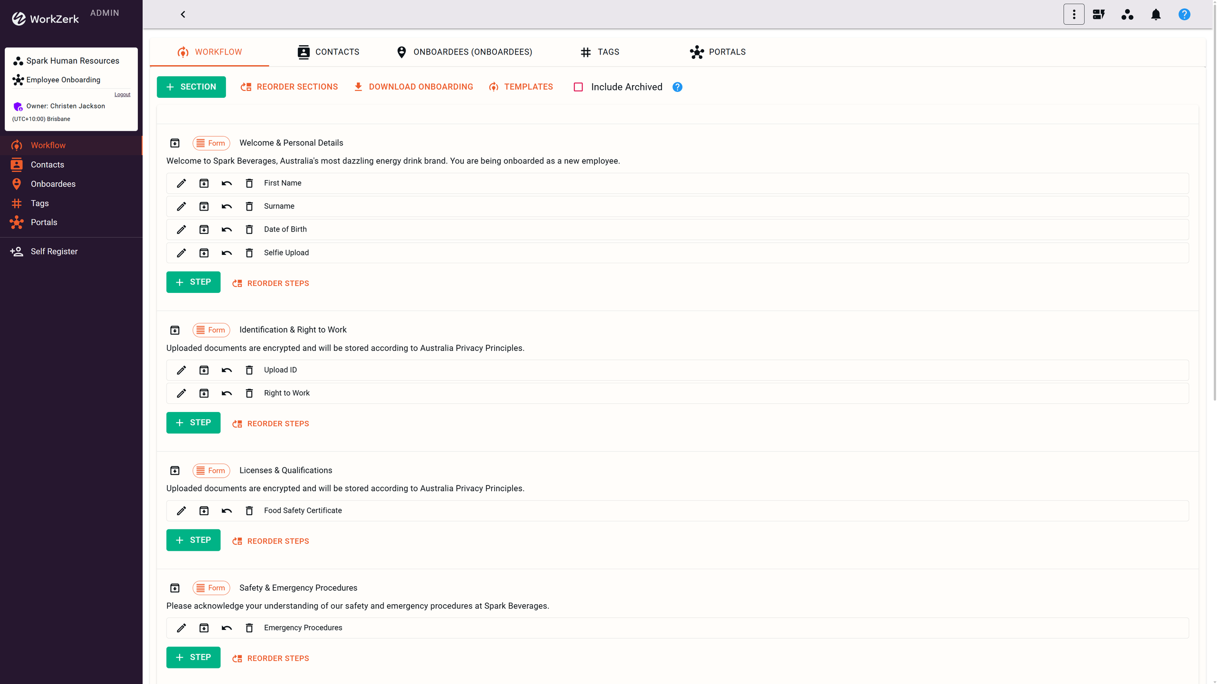 Each onboarding step template guides people through your structured onboarding and verification process.